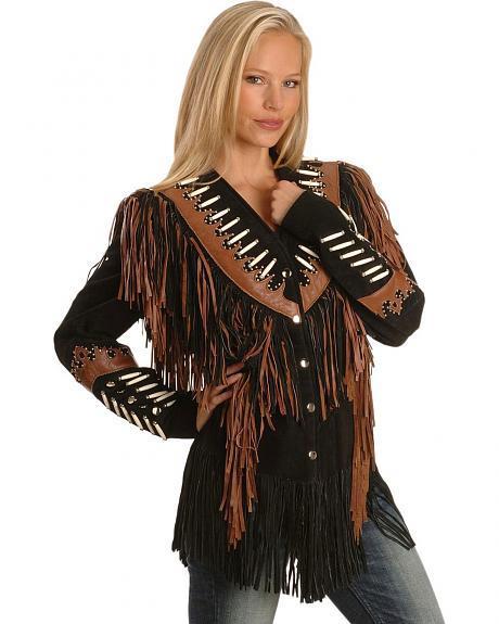 Western Cowgirl Suede Leather Jacket with Fringes Bone