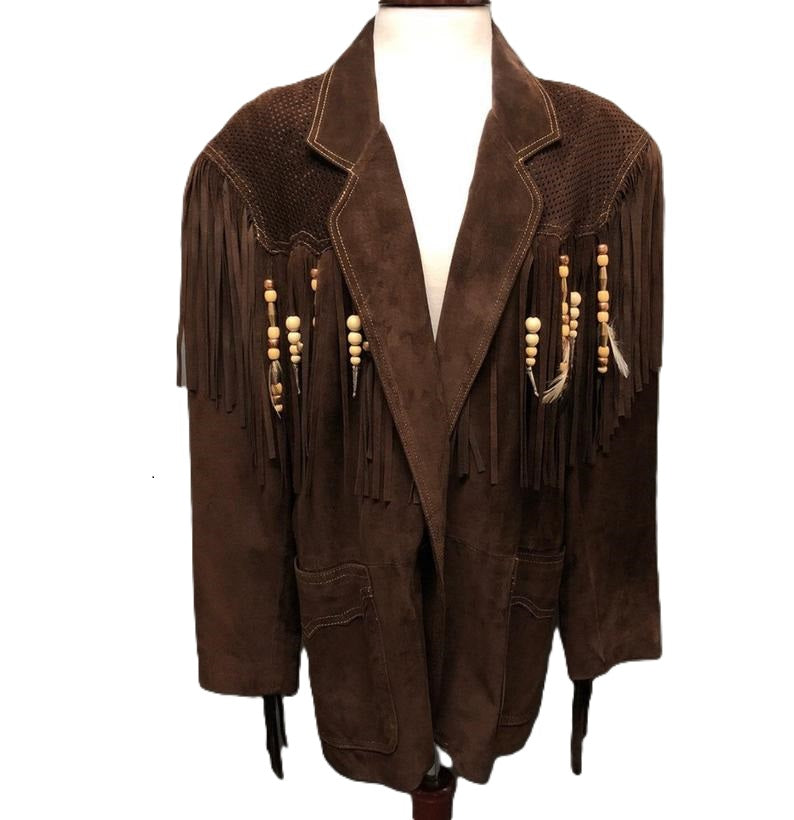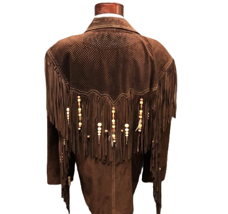 Cowgirl Dark Brown Suede Leather Fringe Beaded Jacket WWJ509