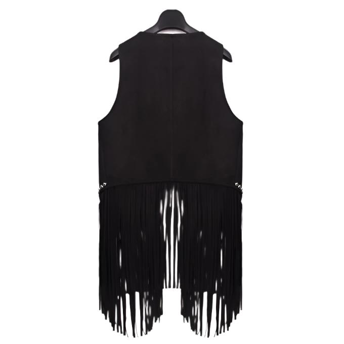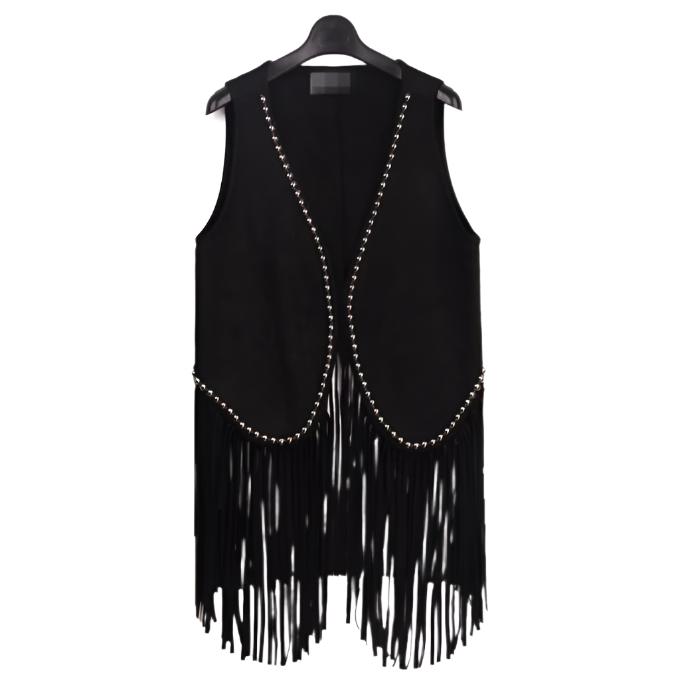 Western Cowgirl Suede Leather Fringe Vest with Silver Stud
