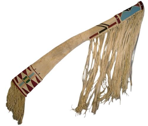 A Rifle Scabbard Leather Sheath in Native American Style is a handcrafted protective cover designed to hold and transport rifles. Made from high-quality leather, it often features intricate beadwork, fringe, and traditional Native American patterns. These scabbards are inspired by the practical and artistic craftsmanship of Native American tribes, combining durability with cultural aesthetics. They typically include a shoulder strap for easy carrying and are perfect for horseback riding or outdoor activities, offering both functionality and a connection to Native American heritage.