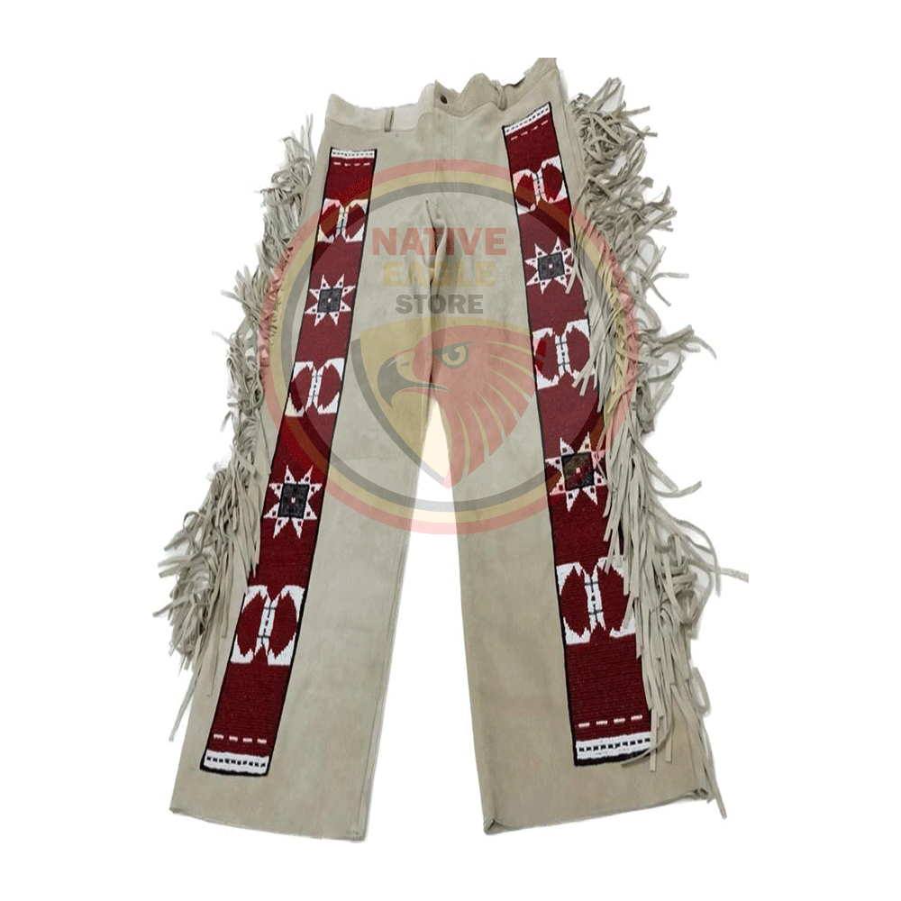 Step into tradition with our Men's Buckskin Leather Fringe Beaded Pants—perfect for powwow regalia, ceremonies, and cultural celebrations. Handcrafted with authentic buckskin, intricate beadwork, and flowing fringes, these pants honor Native American heritage with style and craftsmanship. Ideal for dancers, collectors, and those embracing Indigenous artistry. Shop now for premium handmade regalia!